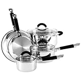 Hamilton Beach kitchenware featuring exciting products with functional flair. Innovative Elegance! It's all about focusing on style and function. Hamilton Beach kitchenware has the distinctive features that meet the real needs of the family chef. 8 piece stainless steel set includes 1 quart pan with lid, 2 quart pan with lid, 5 quart dutch oven with lid, 8 and 10 inch skillet.
