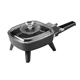 Toastmaster, 7", Square, Compact Skillet With 32 OZ Capacity, Handi Pan, Non Stick Cooking Surface, Removable Handle Fits Inside Skillet For Compact Storage, Full Range Temperature Control, Completely Immersible With Handle Removed, Tempered Glass Lid.This handy omelet pan allows you to cook right at the table. It's perfect for buffets or brunches where you need to cook serving after serving of omelets or burgers, warm appetizers, or sauté side dishes. When you plug in the pan, the surface automatically heats up; you have to unplug the pan to turn it off, which is a bit inconvenient. The built-in thermostat keeps the pan at a constant 325 degrees F--a bit too hot for keeping egg dishes warm without overcooking them, so transfer them to plates quickly. The nonstick surface cleans up in a jiffy; as with any nonstick pan, use only plastic or wooden utensils. --Shannon Borg