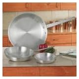 3 pc aluminum fry pan.Features riveted handles and are made of professional restaurant quality aluminum.Includes: 7" open fry pan, 10" open fry pan and a 14" open fry pan.