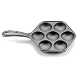 Make these favorite treats of Denmark in your own home.Serve sweet or savory anytime!Fill with fruit, jam, cheese, chocolate or meats.Perfect for gift giving or serving with party platters.Pan made of cast iron, is 6.5 inches in diameter and each "hole" is 2 inches deep.Recipe included.