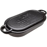 This Old Mountain cast iron baker / fryer is pre seasoned and ready to use.This baker / fryer measures 20" x 9" x 3" deep and has loop handles on both ends for ease of handling.The lid to this item doubles as a two burner griddle and also has loop handles on both ends.Cast iron retains heat better than any other cooking media and is the cooking choice of many chefs and home cooks alike.The attractive Old Mountain logo embossed on the top of the lid adds extra style and value.