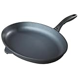 With its unique oval shape, this heavy-duty cast-aluminum fry pan works great for fish, steak, potatoes, veggies, and more. Diamond crystals form its virtually indestructible nonstick cooking surface, which will not peel, crack, or blister, and metal utensils are safe to use. The cookware's flat bottom provides even heat distribution and accommodates all ceramic, electric, and gas cook tops. In addition, the pan's stay-cool ergonomic handle ensures a safe, comfortable grip, and is oven-safe up to 500 degrees F. Combining exceptional durability and versatility in the kitchen, the dishwasher-safe fry pan measures 11 inches long (20 inches with handle) by 15 inches wide by 2-1/5 inches deep and carries a limited lifetime warranty.