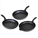 This 3 piece frypan set contains an 8,10,and 11 inch open frypans. A great collection of frypans that provide great flexibility for all sorts of cooking projects. The pans feature a patented diamond reinforced non stick cooking surface using real diamond crystals in a nano composite. This new non stick cooking surface makes for unequal food release and easy effortless cleanup plus, will not peel, crack or blister.