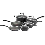 T-Fal's 10-piece Professional Cookware Set features an 8" saute, 10.25" saute, 1qt. Covered saucepan, 2qt. Covered saucepan, 3qt. Covered saucepan, and 6.5qt. Covered Dutch Oven. The set is equipped with T-fal's patented non-stick coating, riveted soft-touch handles, steam vented glass lids and is oven safe to 350 degrees. This cookware is also equipped with a stainless steel disc which is embedded in the base of the pan to prevent warping as well as T-fal's patented Thermo-Spot heat indicator. "10-Piece" Professional Cookware Set Includes: 8" and 10.25" fry pans, 1 quart covered saucepan, 2 quart covered saucepan, 3 quart covered saucepan, 6.5 quart dutch oven. Thermo spot hot indicator tells you when the pan is pre-heated to start cooking. Non-stick exterior. Stainless steel disc base provides superior heat distribution and maximum anti-warping projection. Expert non-stick cooking surface. Silicone handles that are ergonomically designed riveted. Oven safe to 350 degrees. Dishwasher safe. Black. Limited lifetime warranty. Boxed T-fal discontinued Model no. 14500900A (Ace no. 6108674) and is recommending this model as its replacement