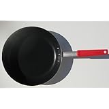 (More customer reviews)This is a beautiful and very well built nonstick frying pan.It has nice thick aluminum and a solid looking Teflon surface.But it has one serious design problem:the handle is so thick, long, and heavy that when placed on an electric burner---the large as well as small ones---the handle makes the pan tip, so that most of the bottom of the pan isn't even contacting the heating element.If you pour in an egg or batter at this point, it will flow to one side.